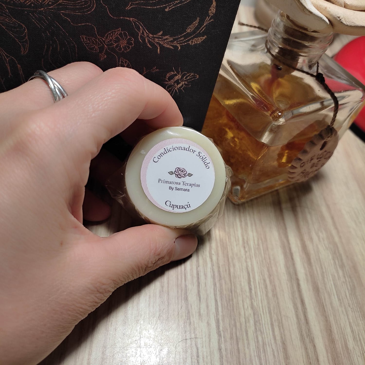 Condicionador Sólido com Manteiga de Cupuaçu e óleos essenciais de Laranja e Patchuli.